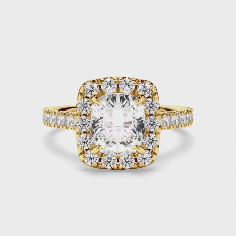Cushion Cut Diamond Halo Engagement Ring with Diamond Sides
