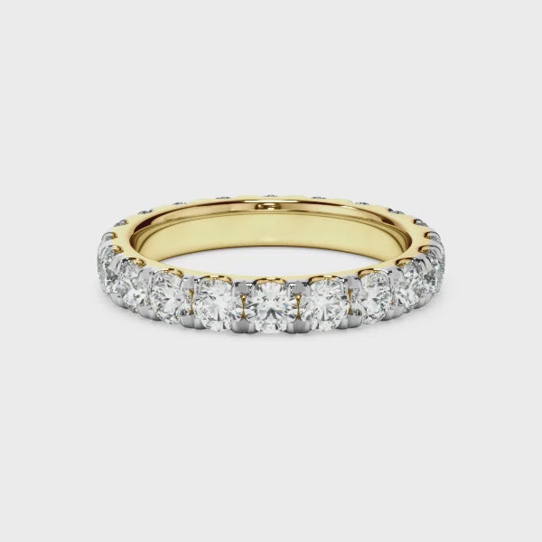 This stunning custom-made eternity wedding ring features a full band of round brilliant cut diamonds set on an 18ct gold or platinum band. Exuding fluidity in its line work, and boasting an elegant silhouette, as with all the pieces in our Bespoke Collection, this piece is made especially for you.