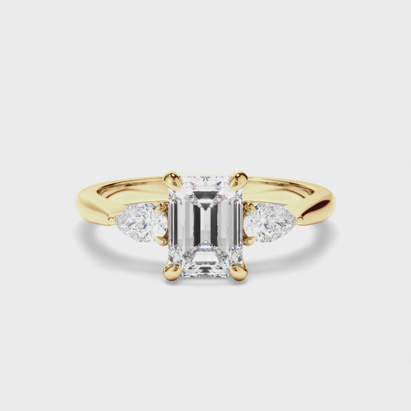 Emerald Cut Diamond Trilogy Engagement Ring with Pear Sides