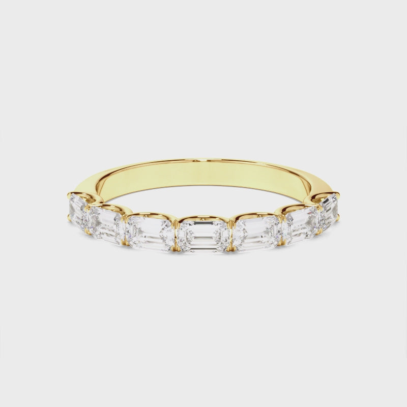 This stunning custom-made anniversary ring features a half band of emerald cut diamonds set on an 18ct gold or platinum band. Exuding fluidity in its line work, and boasting an elegant silhouette, as with all the pieces in our Bespoke Collection, this piece is made especially for you.