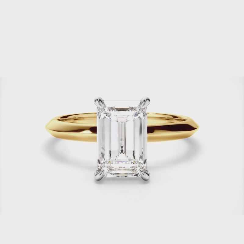 This timeless custom-made emerald cut diamond solitaire engagement ring, made with your choice of diamond centre stone, set in a classic knife edge band. Exuding fluidity in its line work, and boasting an elegant silhouette, as with all the pieces in our Bespoke Collection, this piece is made especially for you.