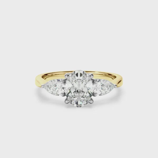 Oval Cut Diamond Engagement Ring With Pear Cut Diamond Sides