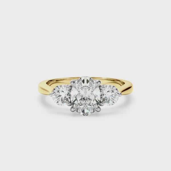 - Side stones: 2 x 0.25ct Round Brilliant Cut E+ VS+ Laboratory-Grown Diamonds = 0.50ct TDW