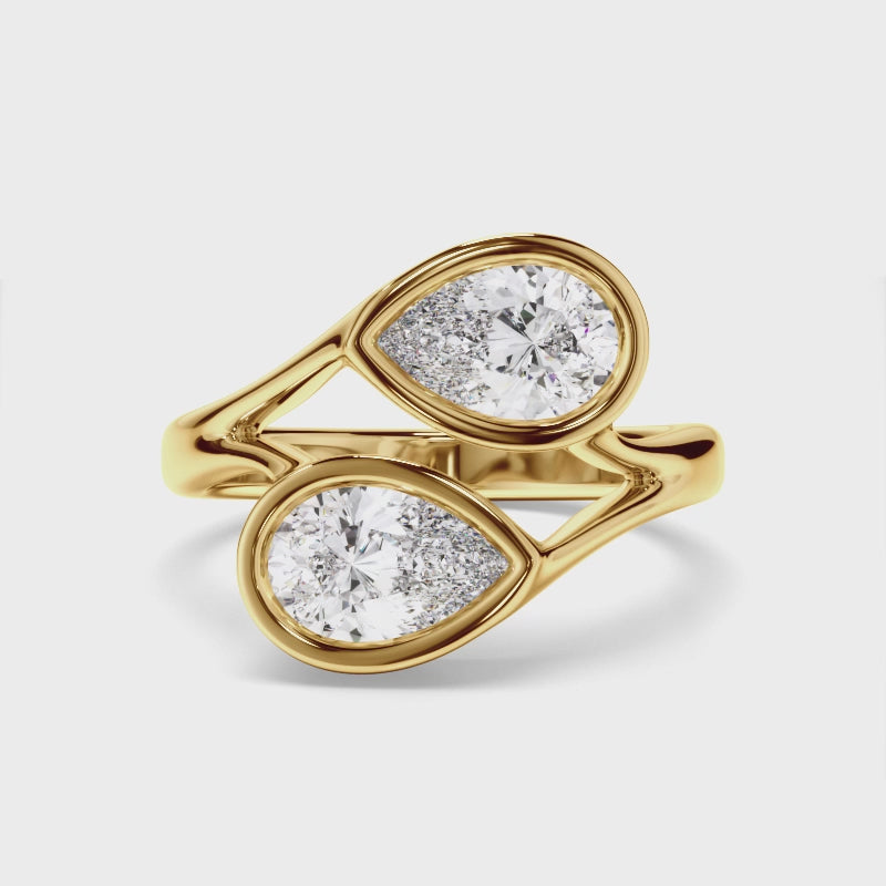 This stunning custom-made Toi et Moi Engagement Ring features two 1.00ct Pear Cut Diamonds within a bezel setting. Exuding fluidity in its line work, and boasting an elegant silhouette, as with all the pieces in our Bespoke Collection, this piece is made especially for you.