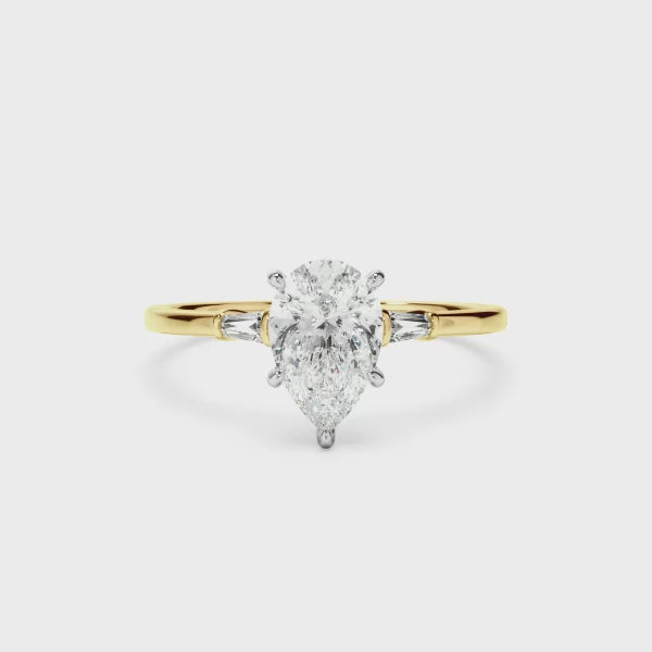 Pear Cut Diamond Engagement Ring With Baguette Sides