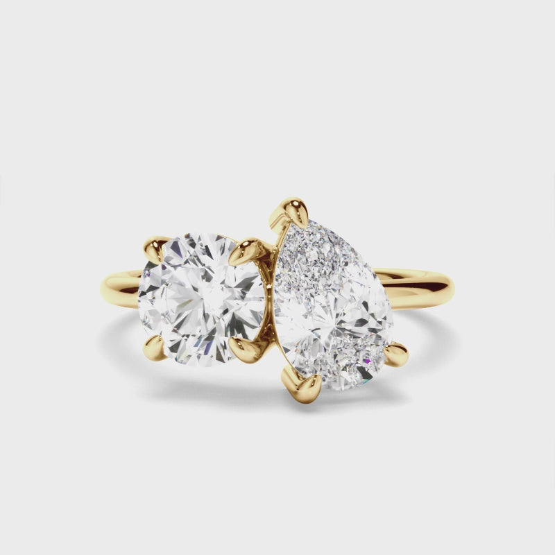 Round Brilliant & Pear Cut Diamond Toi et Moi Engagement Ring